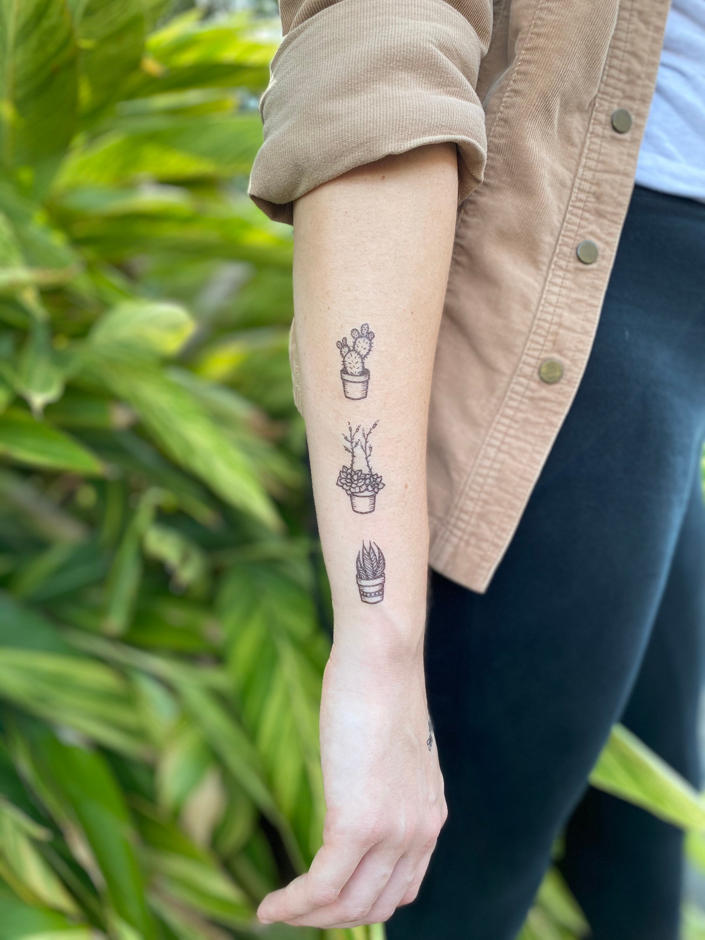 Potted Cactus Temporary Tattoos Succulent House Plants Black Etsy Uk